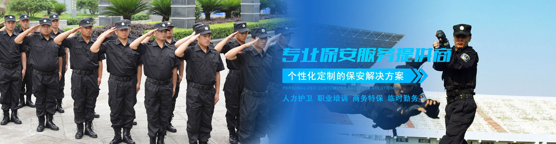 公司自創辦以來,堅持以“誠信為本,定向招聘,定向培訓,按需培訓”的服務宗旨,嚴格貫徹執行《保安服務操作規程》和《保安服務質量標準》,服務于我市的金融單位、機關、電力、廠礦、社區、賓館和學校等各個領域,受到各合作單位的高度贊揚和一致好評…… [詳細]